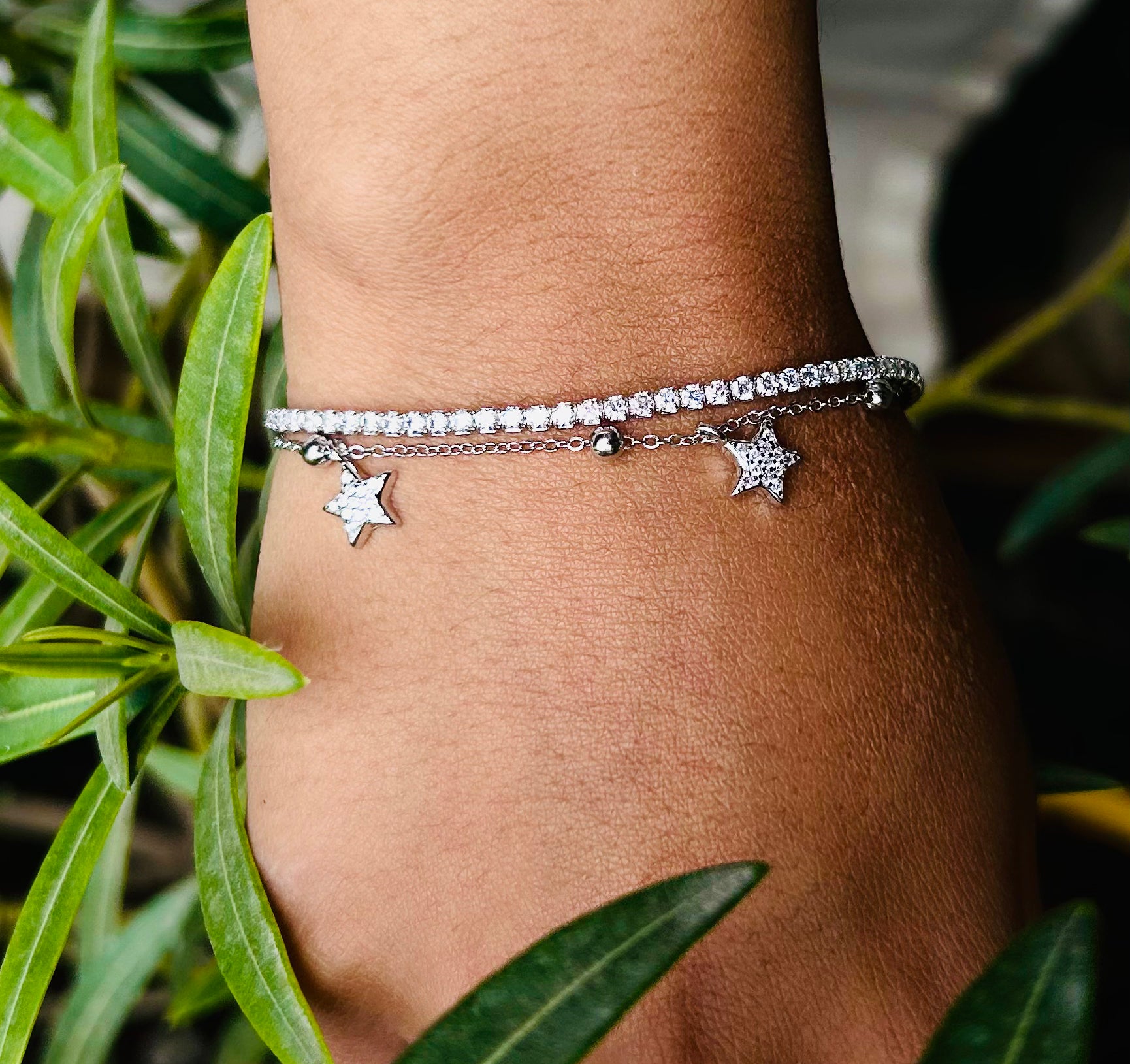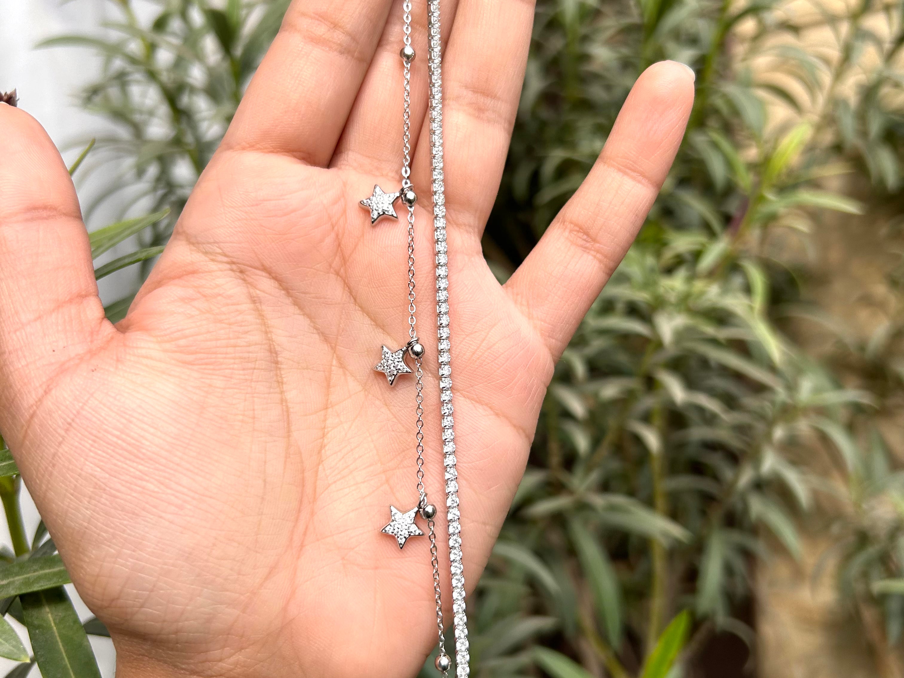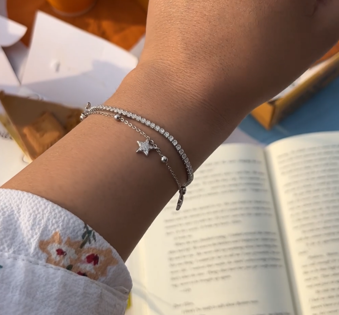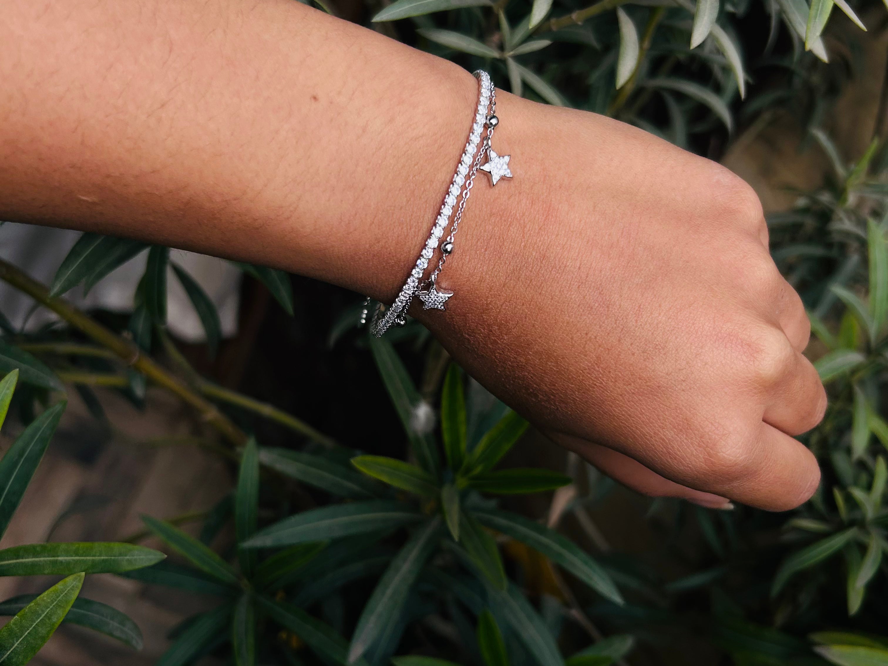 Whether you're looking to add a touch of glamour to your everyday ensemble or searching for the perfect accessory to complement a special occasion outfit, our star Tennis Bracelet is the ideal choice. It effortlessly combines modern style with classic charm, making it a versatile and timeless addition to your jewelry collection.