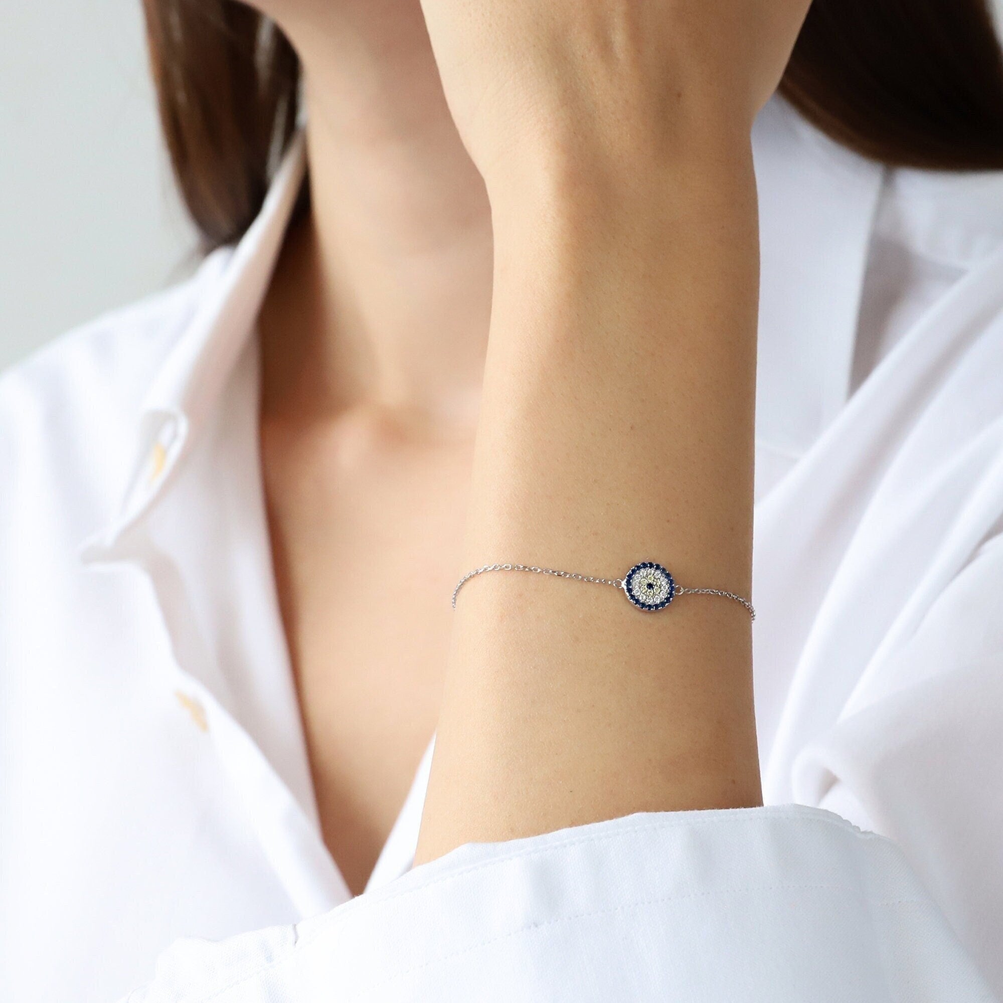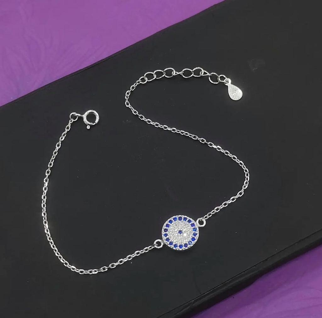 Introducing the Silver evil eye bracelets that are perfect for any woman. Made with Sterling silver and stamped with a 925 hallmark, these bracelets are not only beautiful but also durable. The evil eye symbolises the protection from negative energy. The adjustable closure not only makes the bracelet fit for everybody but also stylish.