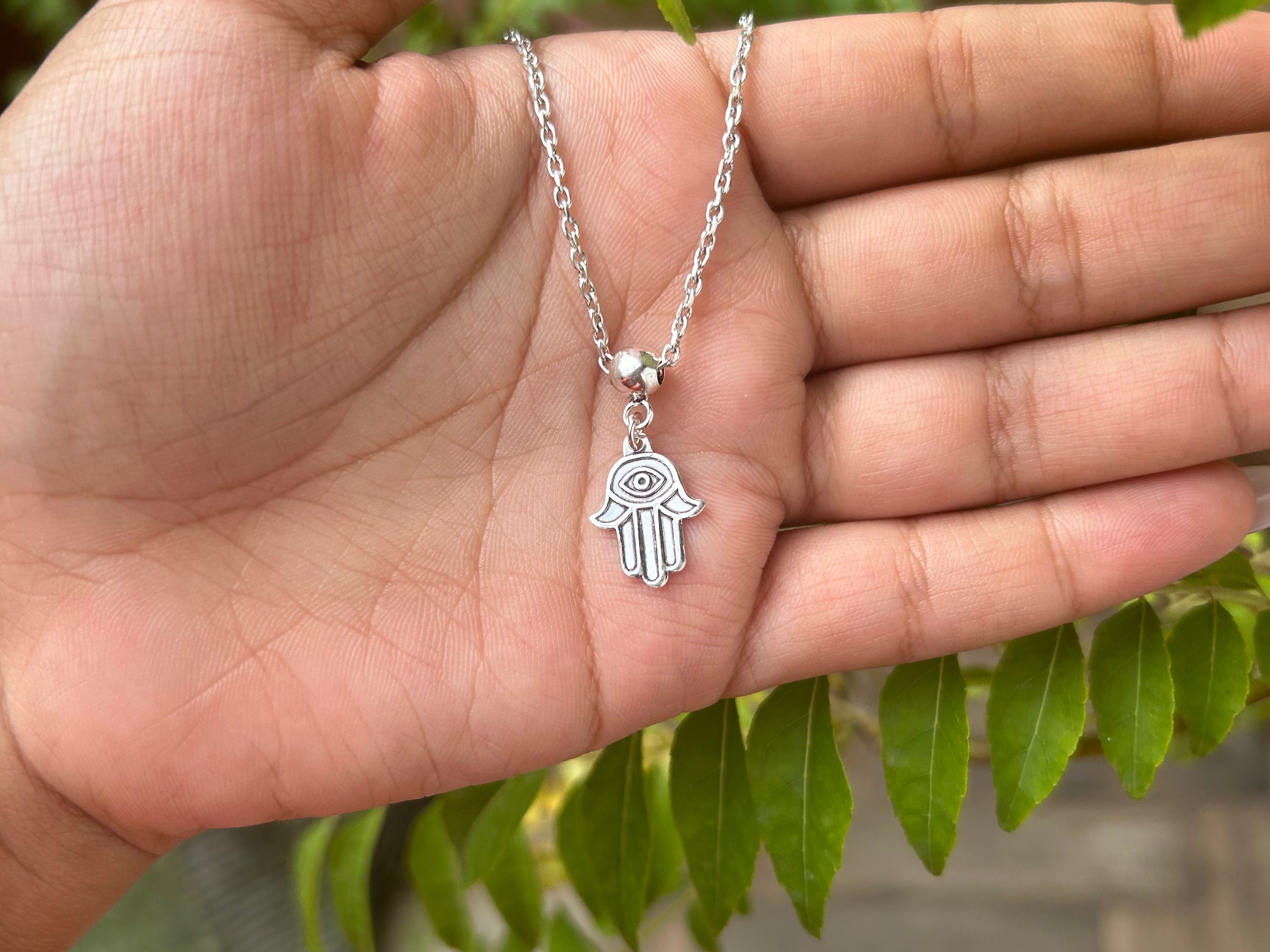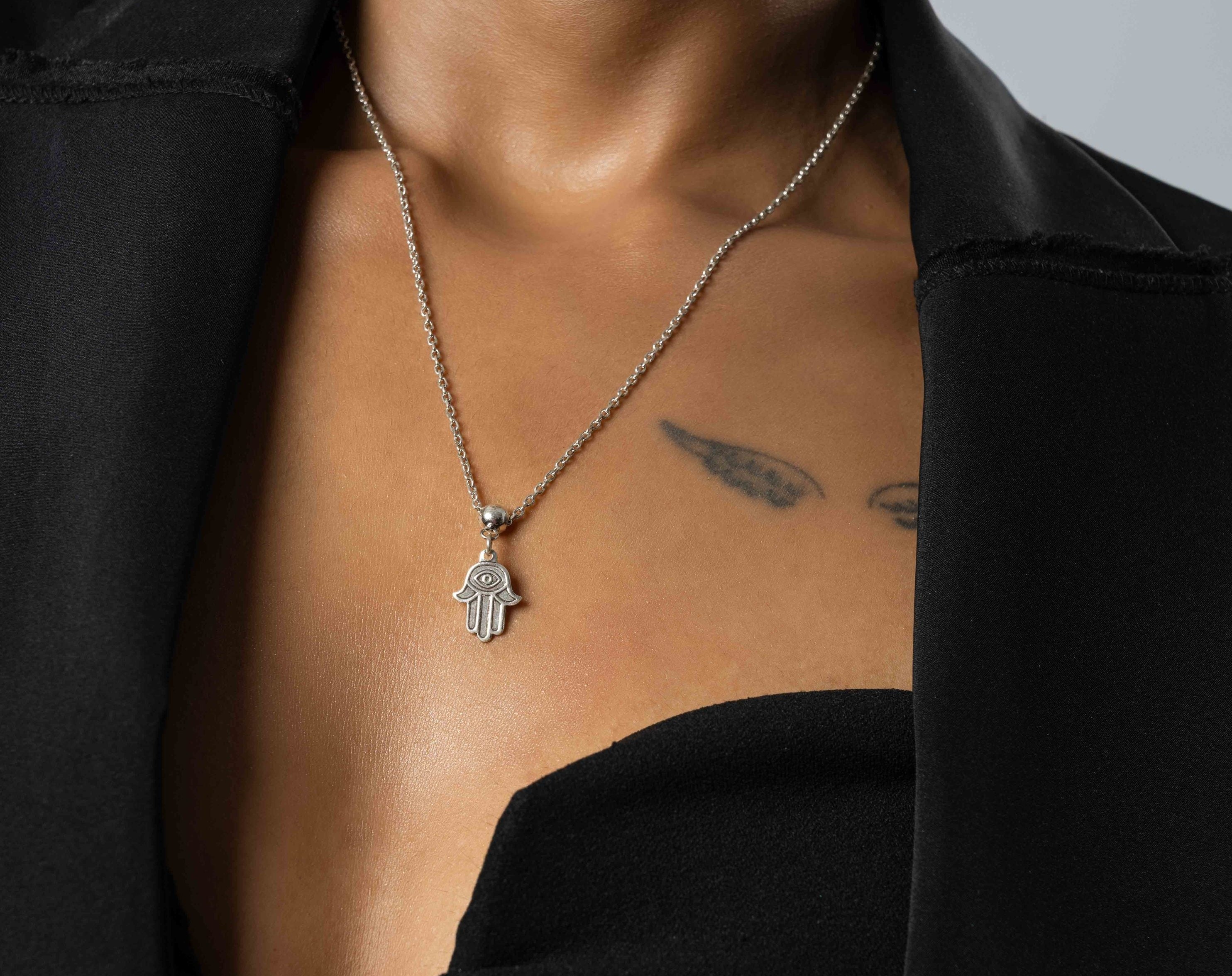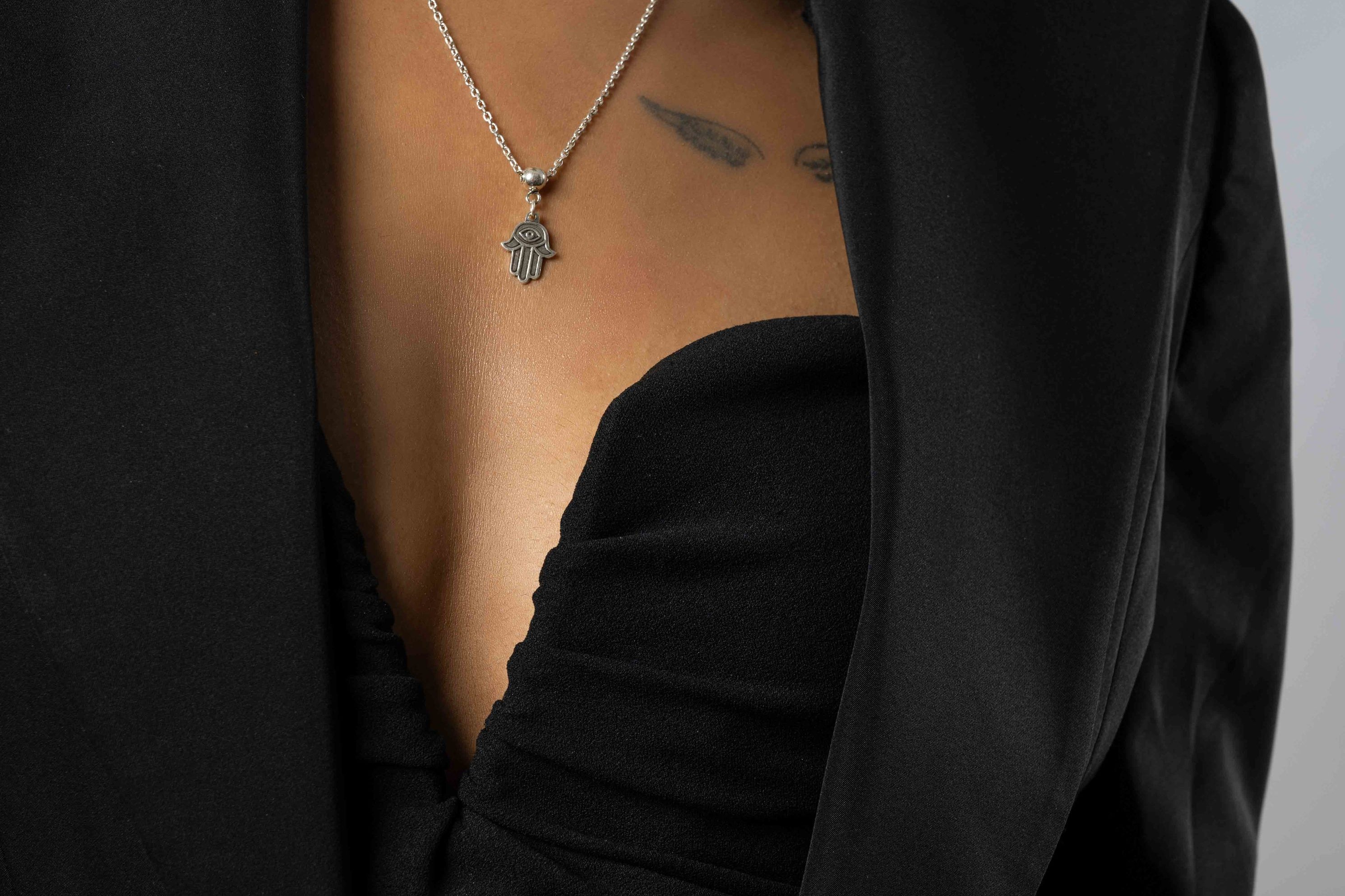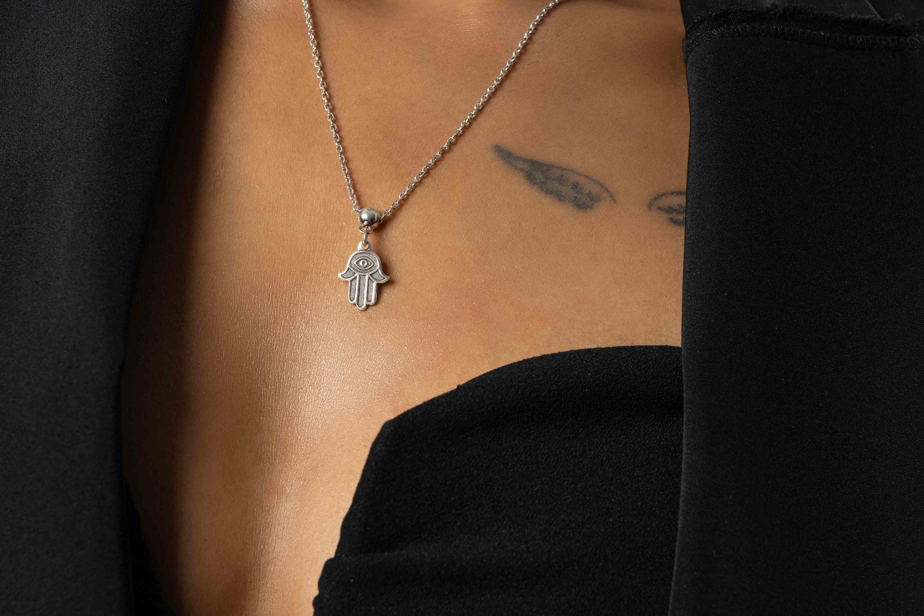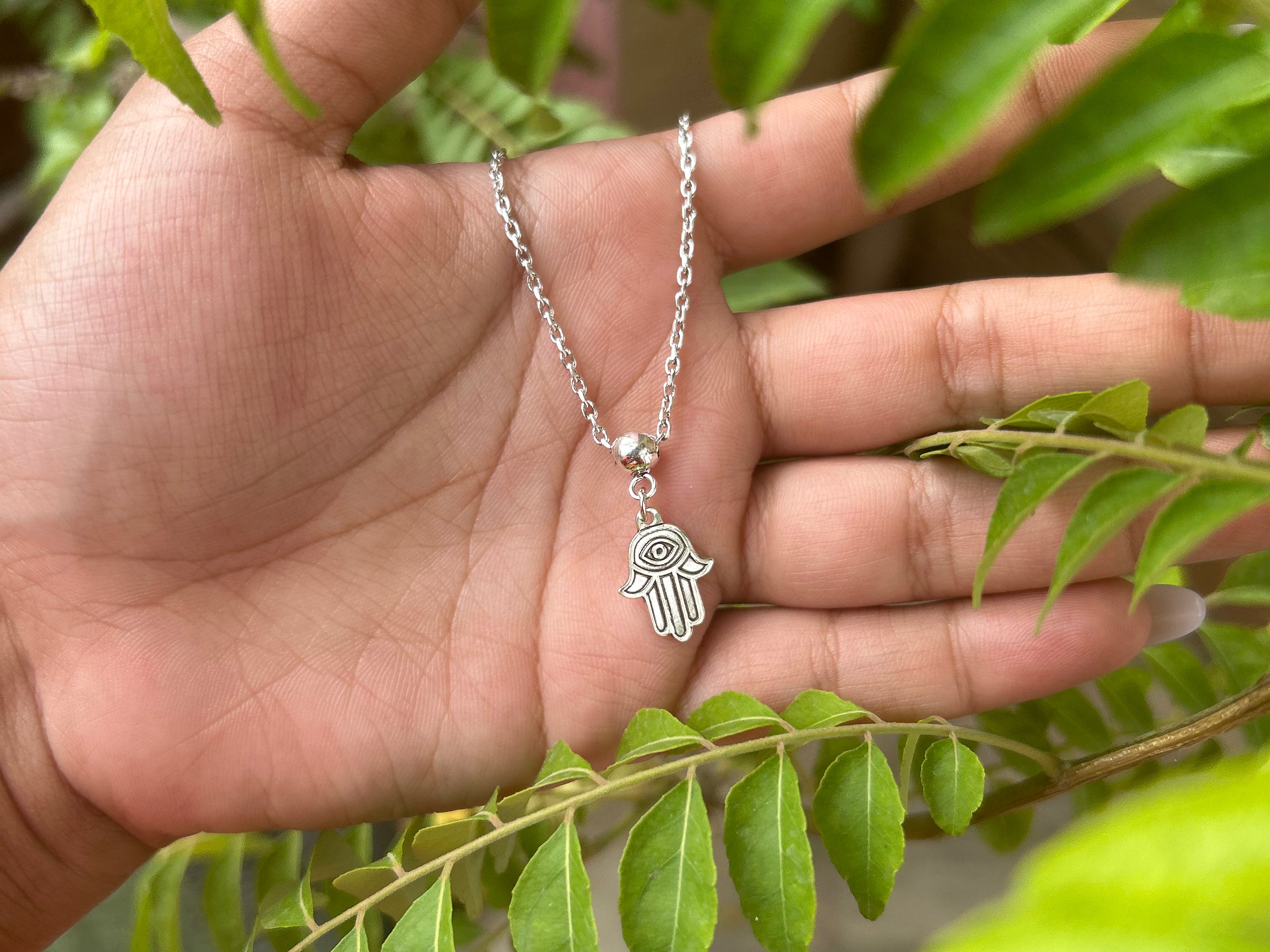 The Hamsa, with its open palm and all-seeing eye, is a symbol of warding off negative energies and bringing good fortune.Ā The minimalist design of our Hamsa chain makes it a versatile accessory suitable for both casual and formal occasions. Its simplicity allows it to seamlessly complement any outfit, adding a touch of spiritual significance to your style.