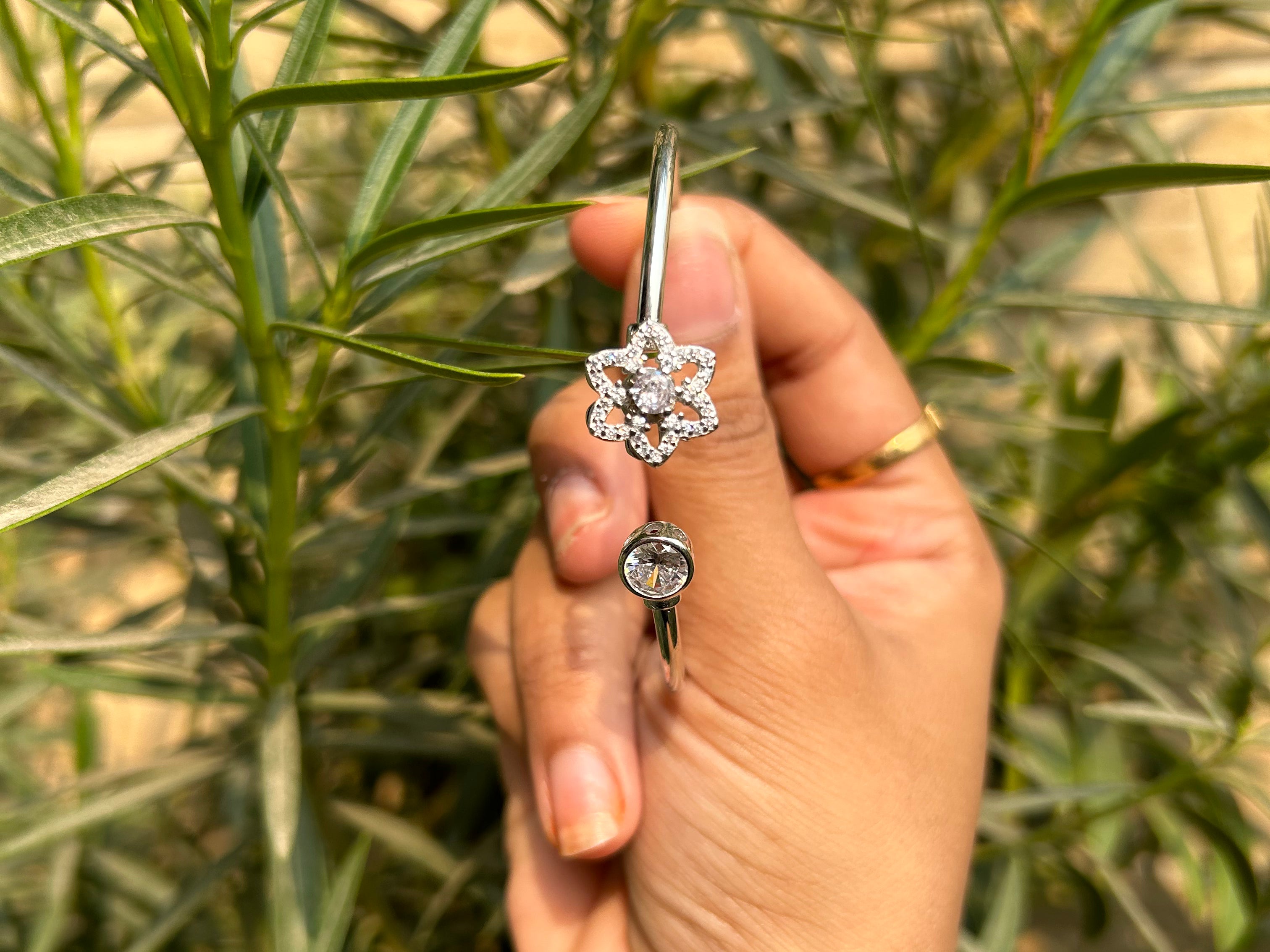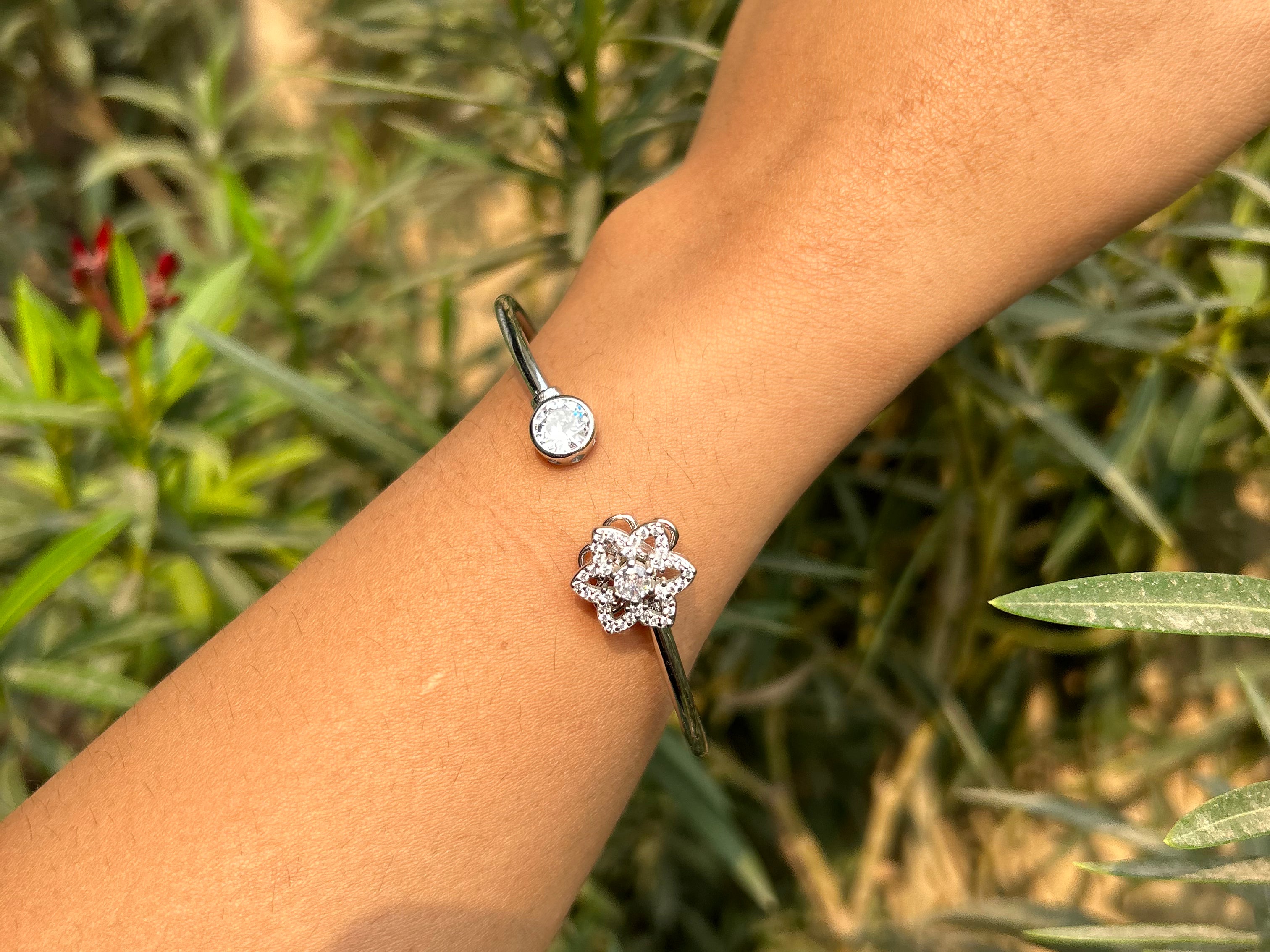 Behold, the swirling cuffs - an elegant and minimal piece of jewelry that commands attention and exudes confidence. Made with high-quality zirconia stones and polished to perfection with rhodium, this bracelet is a must-have for any fashion-savvy woman.
