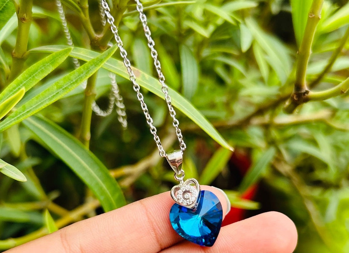 RESTOCKED LIMITED PIECES ON HIGH DEMAND : Introducing our exquisite Ocean Heart Pendant Chain in 925 Sterling Silver – a harmonious blend of elegance and contemporary style. This captivating piece is designed to accentuate your grace, adding a touch of sophistication to every outfit. The blue crystal pendant is a statement in itself and is sure to turn heads.