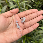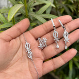 Discover the perfect gift that radiates elegance and charm with our Sterling Silver Jewelry Set, a captivating ensemble that includes a necklace, earrings, bracelet, and ring, all adorned with dazzling cubic zirconia stones.