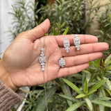 Crafted with precision and adorned with cubic zirconia resembling diamonds ,, this jewelry set is more than just accessories; it's a symbol of your impeccable taste and admiration for the extraordinary. Elevate your gifting experience with a touch of luxury and the enduring beauty of sterling silver. Make every occasion memorable with our Sterling Silver Jewelry Set – a gift that reflects both your thoughtfulness and her timeless elegance.