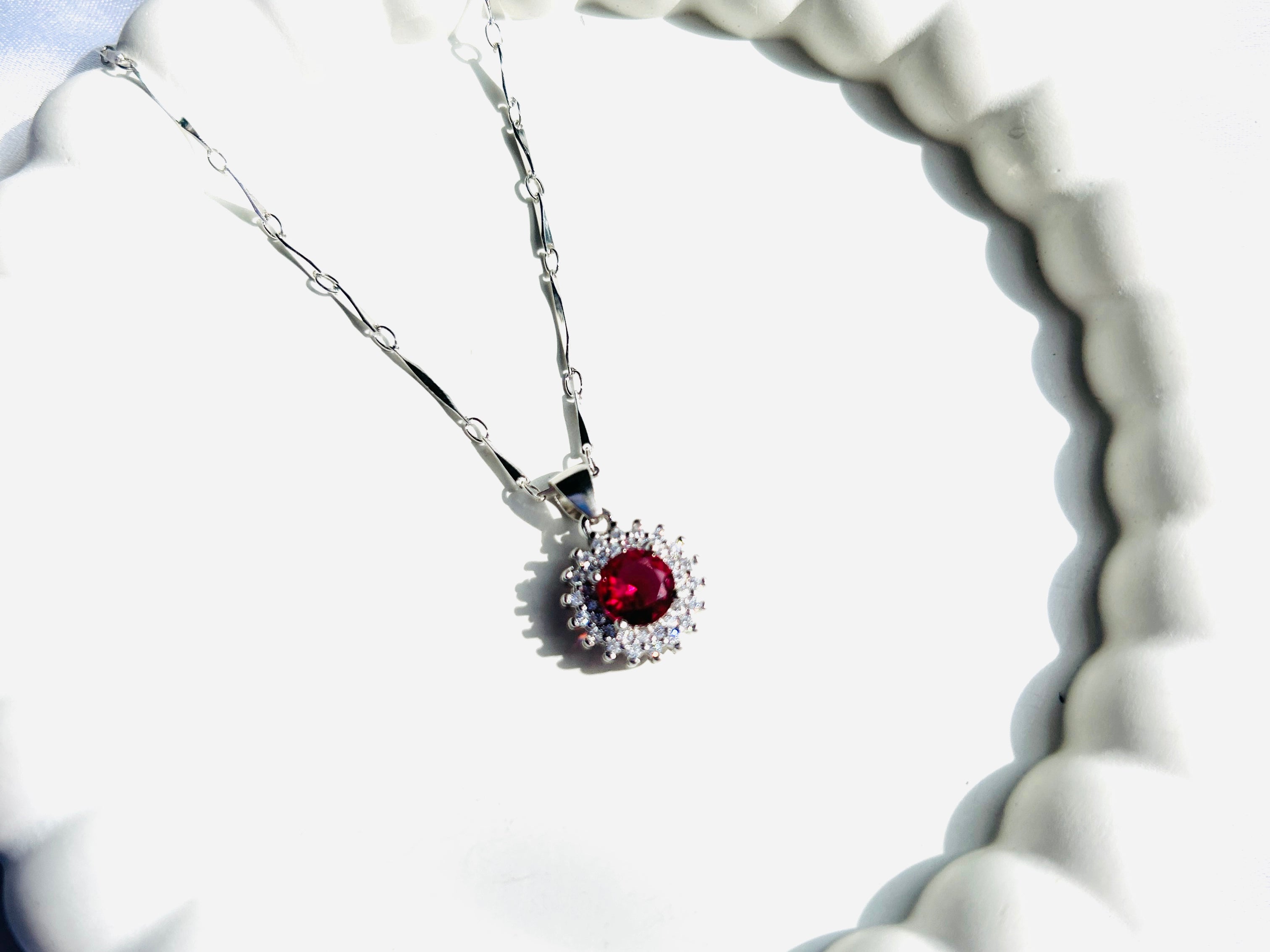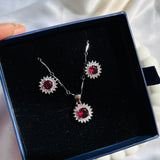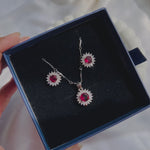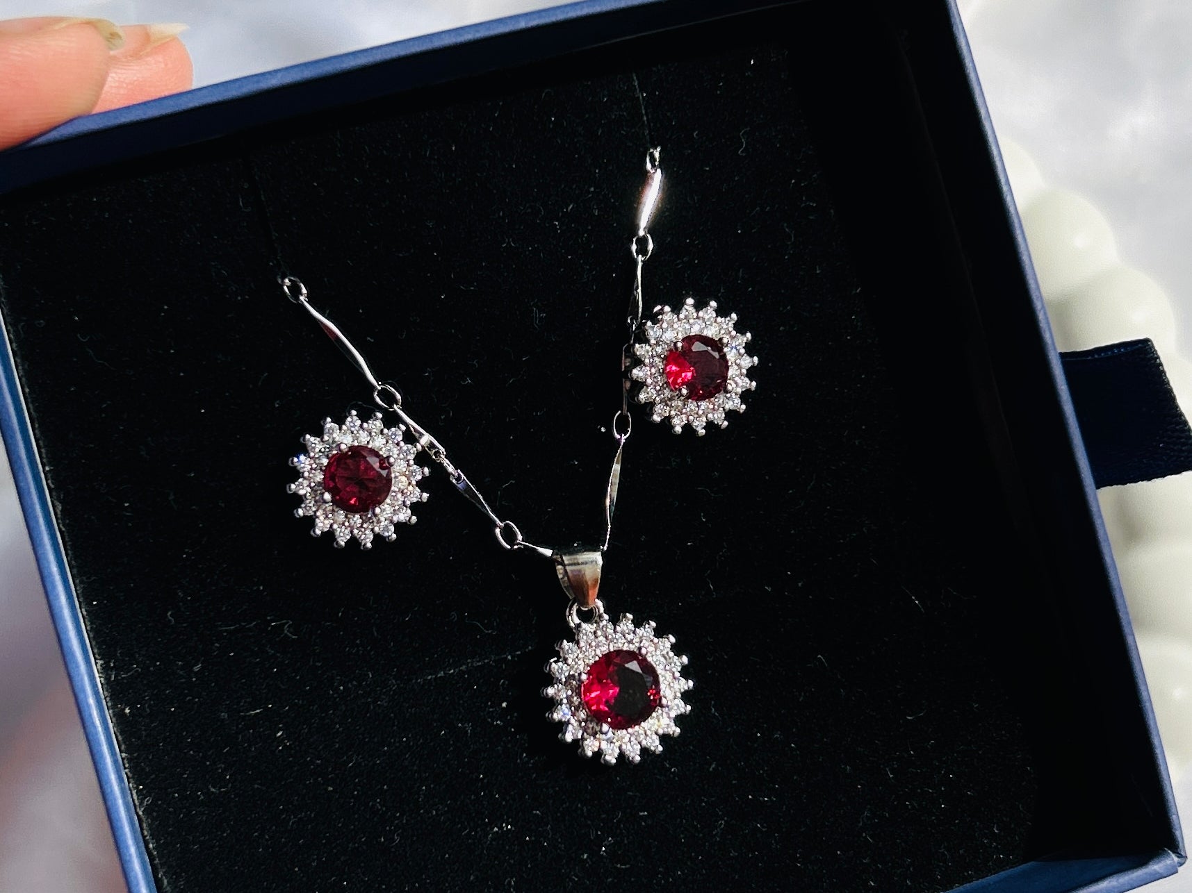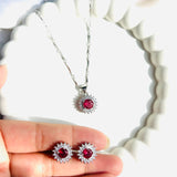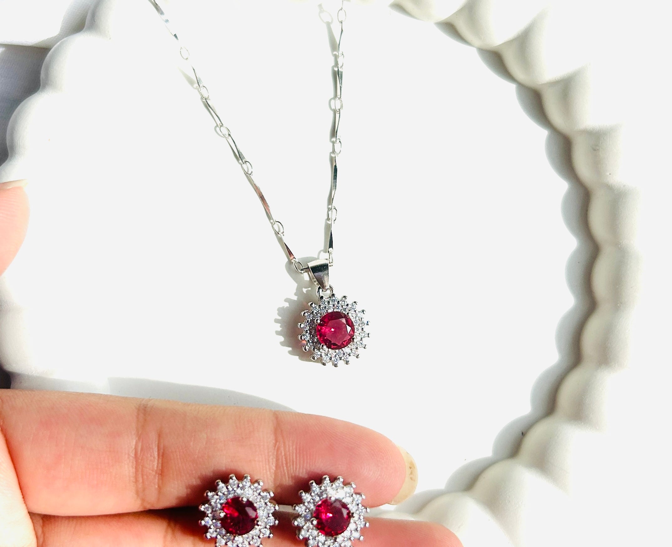 Our pink Stone Pendant Set is a perfect blend of traditional and contemporary aesthetics, featuring a stunning pink stone pendant that will catch the eye of anyone in the room. The rhodium polish gives it a sleek and polished look that will add a touch of sophistication to any outfit.