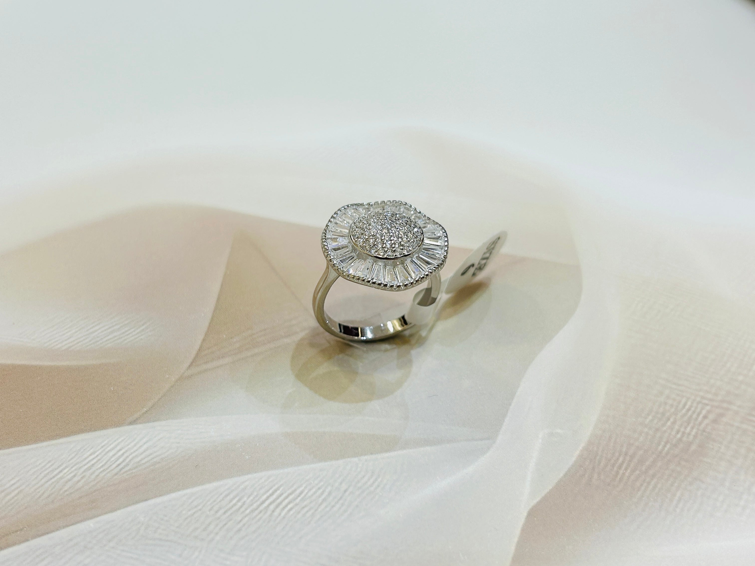 This extraordinary piece features an exquisite design, studded with dazzling zirconia which shine almost like diamonds. The combination of regal aesthetics and timeless charm makes it a perfect addition to your jewelry collection. Ideal for gifting, this ring is a beautiful choice for your mother, sisters, or loved ones, adding a touch of sophistication to any occasion. Elevate your style with this elegant and unforgettable accessory.