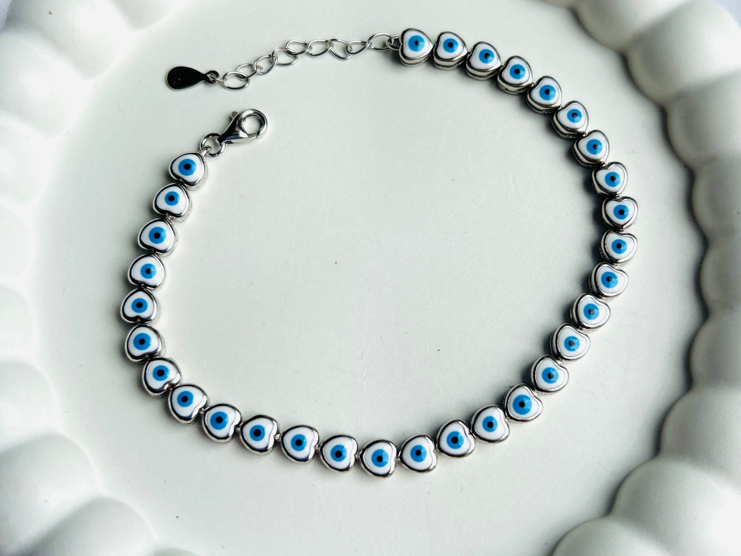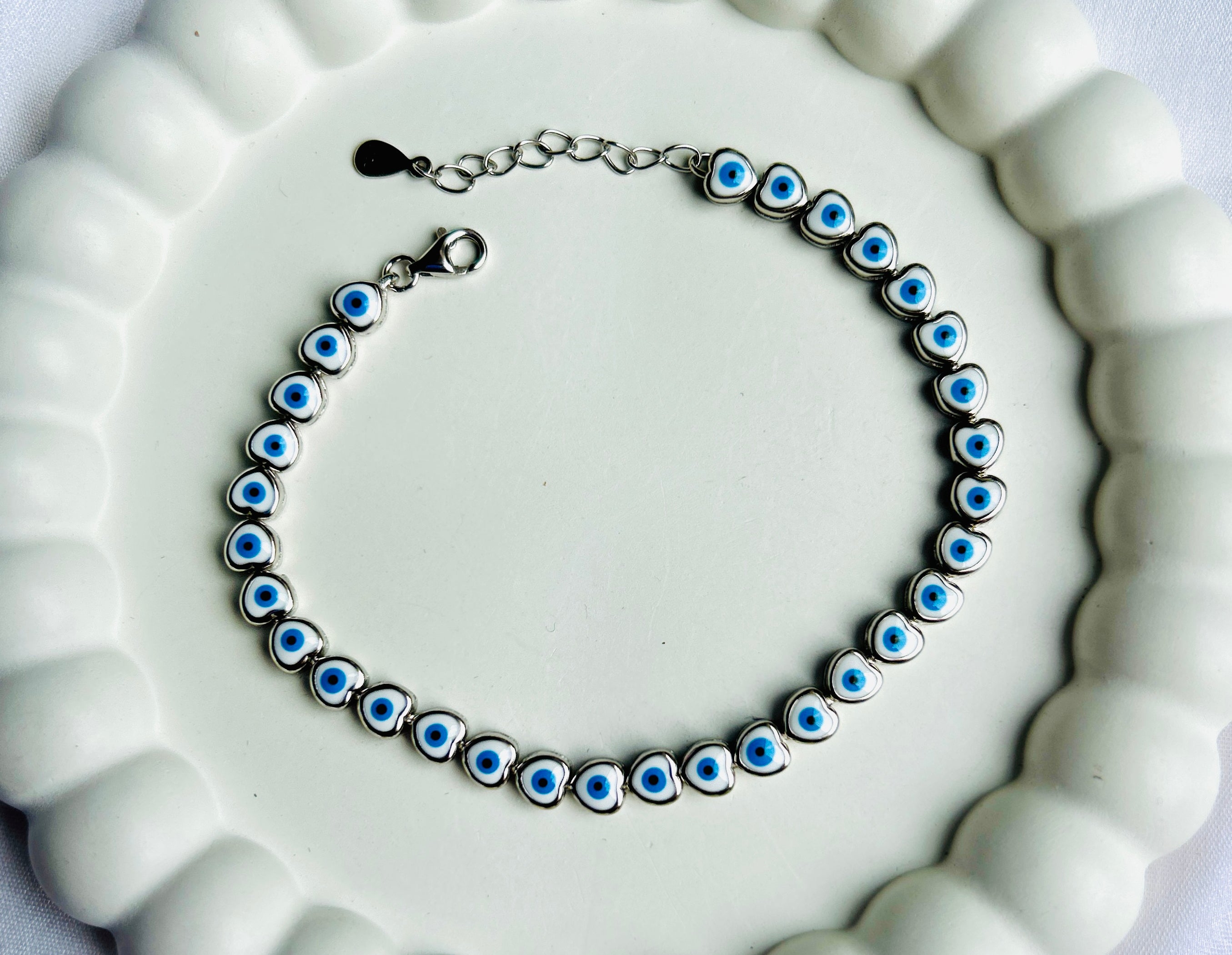 Introducing the most loved evil eye Tennis bracelets that are perfect for any woman. Made with 925 silver and stamped with a 925 hallmark, these bracelets are not only beautiful but also durable. The evil eye symbolises the protection from negative energy. The adjustable closure not only makes the bracelet fit for everybody but also stylish. The package comes in a gift packaging and also with an authenticity certificate .