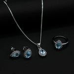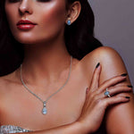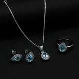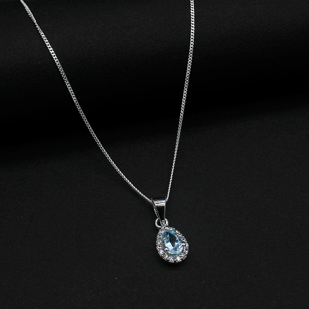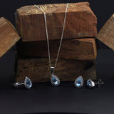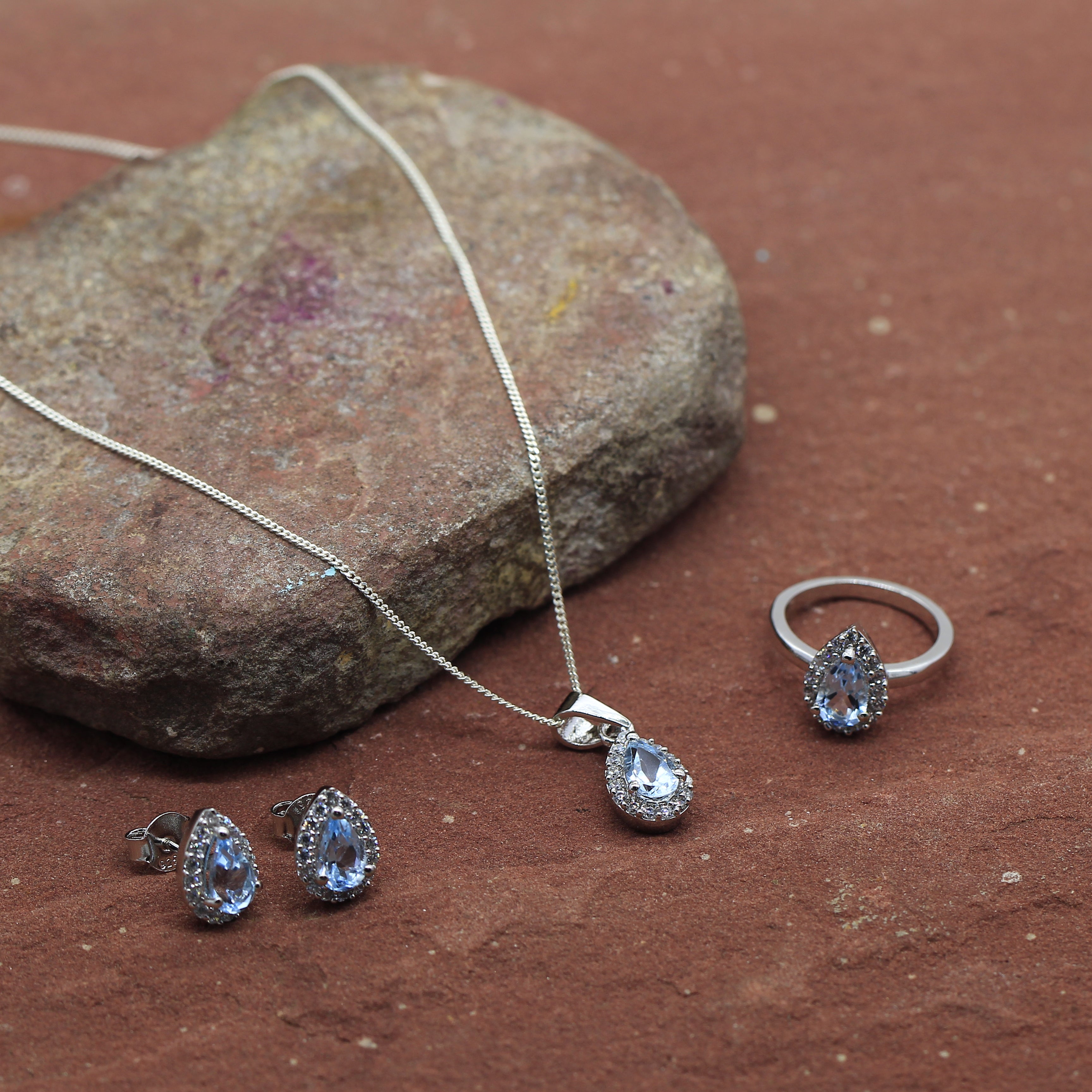 This set features a stunning light blue Ophelia pendant and Ellarah earrings, all set in a polished rhodium finish with a 925 hallmark. Perfect for women who want to add a touch of sophistication to their outfits, this set is sure to turn heads wherever you go.